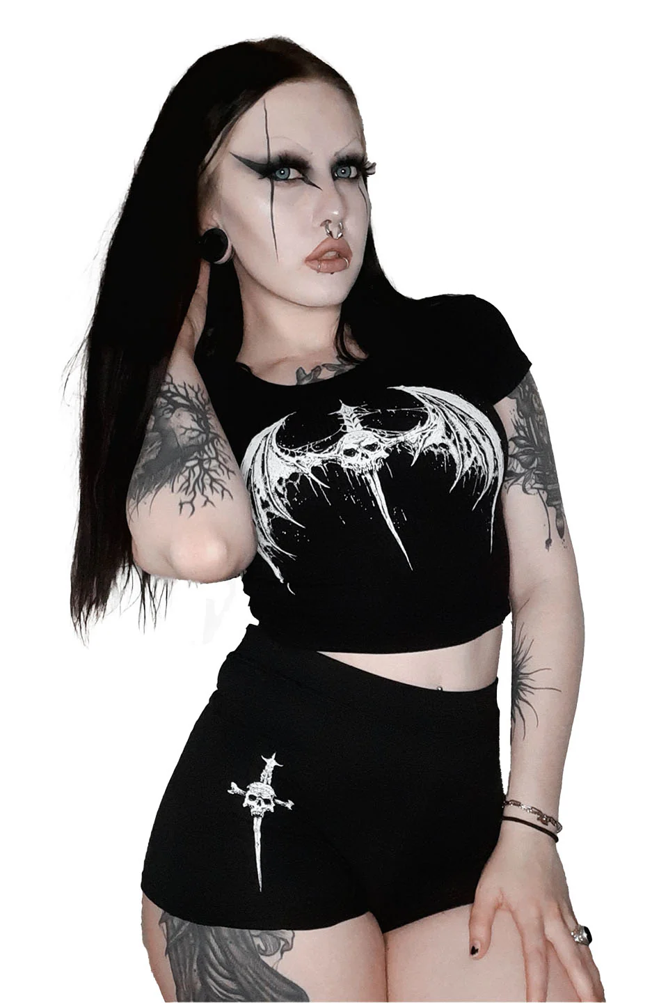 Lip Service Bootie Shorts! Lip Service in the back; dagger in the front. Logo designed by Mark Riddick, master of the metal logo.