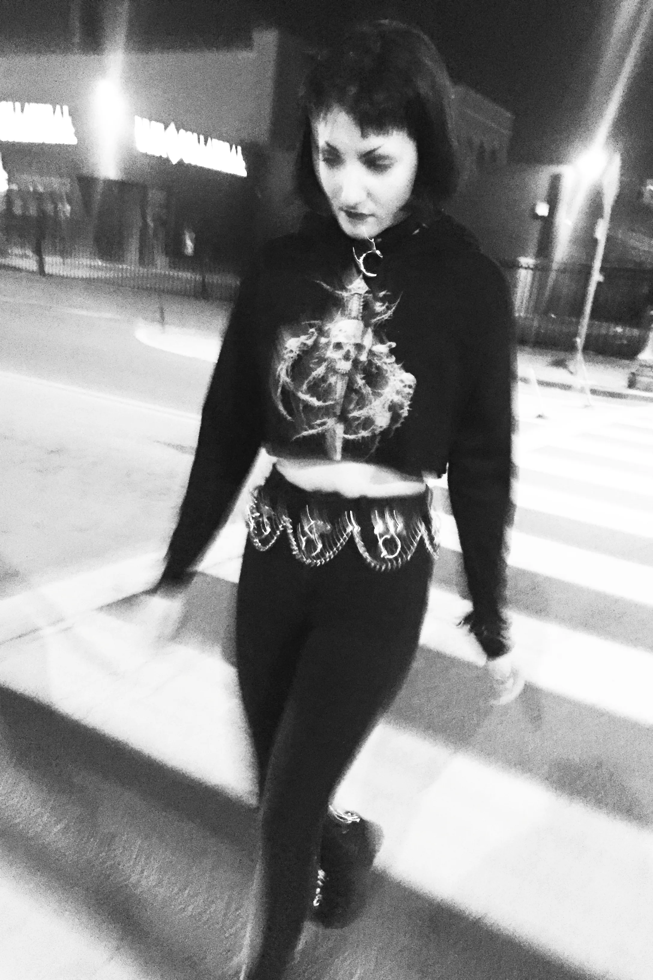 The Old School Dagger remastered by Riddick and printed on a crop hoodie. Hoodie has raw edge detail at hem and is printed on the front and left sleeve panel.