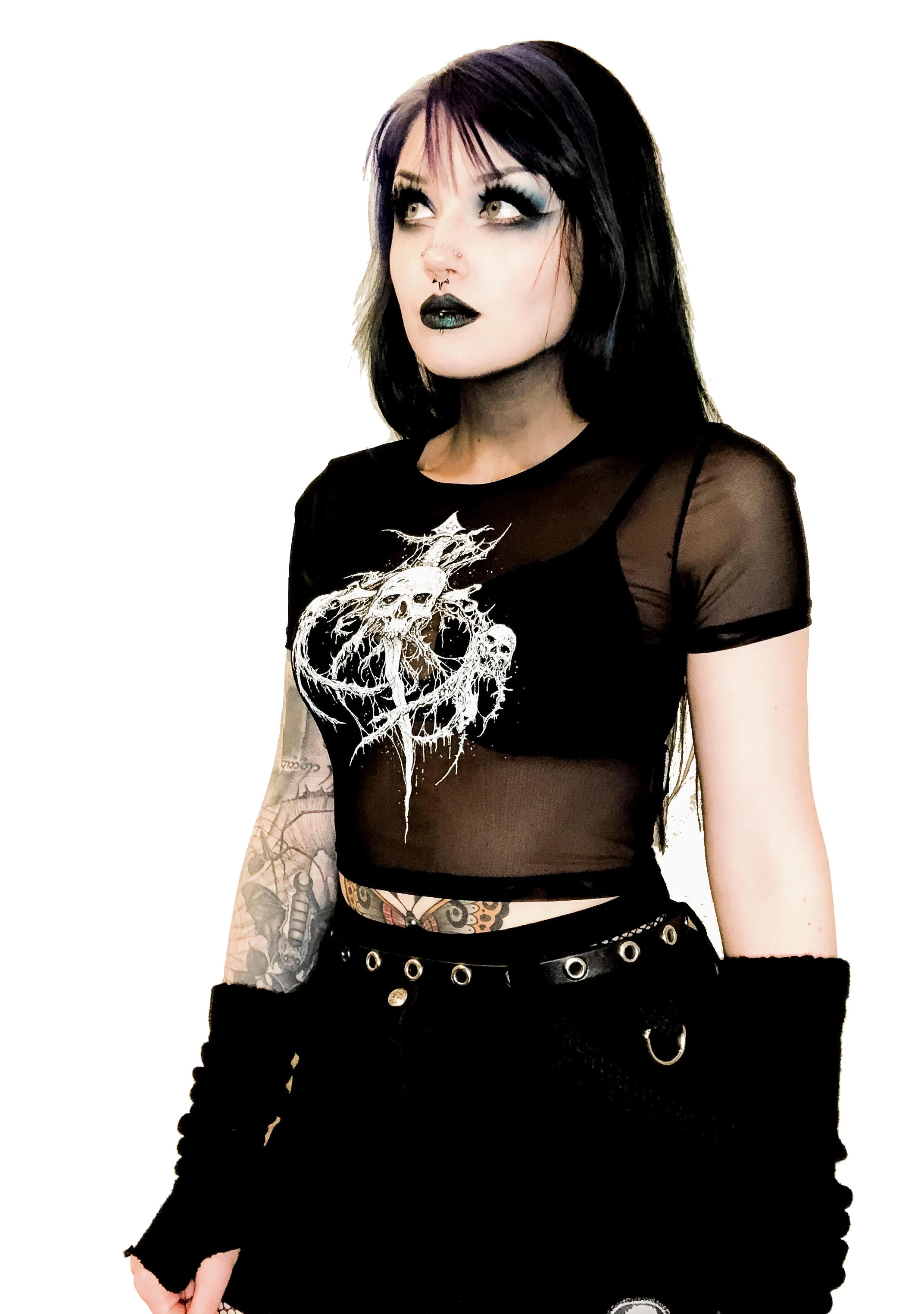 This sheer mesh baby T features our newly beloved Riddick dagger logo. Skin tight, black, sheer and imposing fear in all who gaze upon you!
